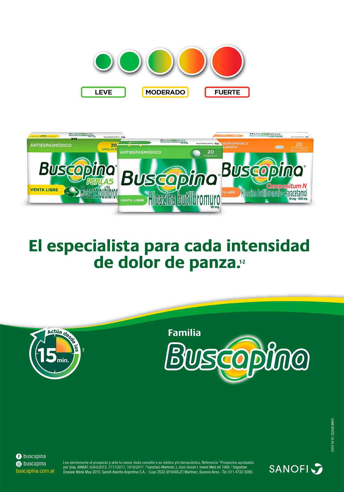 La Hioscina N-Butil bromuro es un alcaloide de la belladona, tiene efectos anticolinérgicos que lo hacen efectivo en la disminución y la frecuencia e intensidad de los movimientos espasmódicos del tracto gastrointestinal. Dicho efecto lo logra impidiendo que la acetilcolina, liberada por el sistema nervioso, se una al receptor del musculo liso, evitando que se produzca el espasmo. Esta es una característica que le da especificidad, ya que impide la generación del espasmo, a diferencia de otros tratamientos que sólo bloquean el impulso doloroso (Ej. Analgésicos).Por otro lado, tiene capacidad de prevenir vómitos y náuseas provocados por el movimiento, dicho efecto estaría generado por la inhibición del reflejo del vómito 4. Es uno de los antiespasmódicos más expandido en el mercado tanto de venta libre o como bajo receta. Existe como monodroga o asociado a analgésicos (paracetamol) 6.